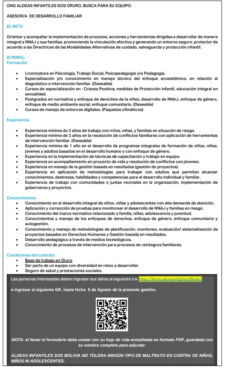ALDEAS INFANTILES SOS BOLIVIA NO TOLERA NINGÚN TIPO DE MALTRATO EN CONTRA DE NIÑOS, NIÑAS NI ADOLESCENTES.