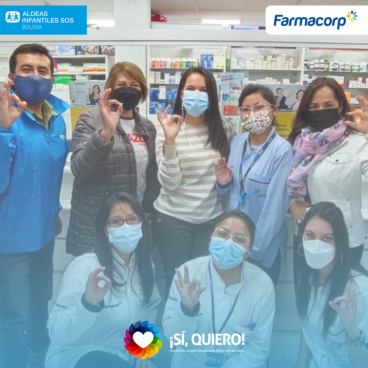 Las personas que visiten las sucursales de Farmacorp en las ciudades de La Paz, El Alto, Sucre y Potosí, desde febrero hasta diciembre de 2022, podrán aportar al fondo que la campaña “Sí Quiero” destinará a Aldeas Infantiles SOS.