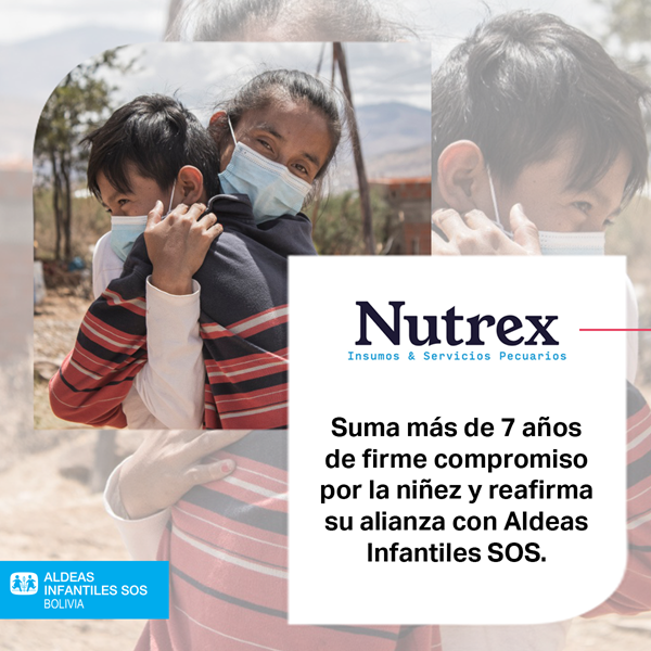 Nutrex, empresa boliviana dedicada a la comercialización de insumos y servicios pecuarios, es Padrino Empresarial apoyando a una familia en Aldeas Infantiles SOS desde 2015, a través de un apoyo constante, compromiso y constancia al positivo desarrollo de niñas, niños y adolescentes que son parte de esta familia.