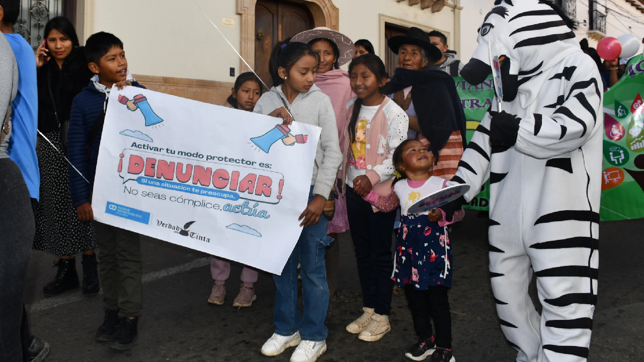 Más de setenta cuidadoras y cuidadores participantes de los servicios de fortalecimiento familiar de Aldeas Infantiles SOS se sumaron a la multitudinaria “Marcha por el Día internacional de la Familia y el Regocijo Familiar Sucrense”, convocada por la Secretaria de Desarrollo Social de la Gobernación del Departamento de Chuquisaca y la Secretaria de Desarrollo Humano y Social del Gobierno Municipal de Sucre. Durante el recorrido, con pancartas en la mano sobre los entornos protectores para la niñez y la prevención de la violencia, las familias corearon frases como: “Cada día una familia”, “las familias debemos querernos y proteger a nuestras hijas e hijos”.