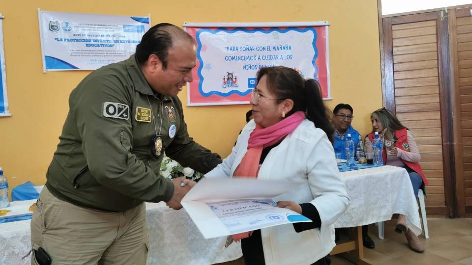 Como cierre del proceso, las maestras y maestros recibieron certificados de capacitación que acreditan las horas de formación y su compromiso con la prevención de la violencia. Esta entrega reconoce el esfuerzo del cuerpo docente y refuerza su rol como actores fundamentales en la protección de niñas, niños y adolescentes dentro de las unidades educativas.
